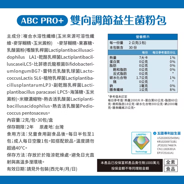 20分鐘前✔️ 三效合一:菌+纖+元全到位 ✔️ 藥廠級專利益菌,效果更有感 ✔️ 雙向調節,穩住每日好順暢 ✔️ 100%保證無添加人工添加物 - 【限定價】【2盒組】 ABC PRO+雙向調節益生菌粉包(30包X2盒)